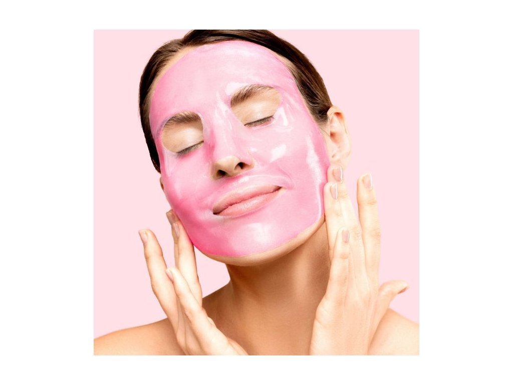 - Růžová plátěná maska vyrobená z přírodní biocelulózy