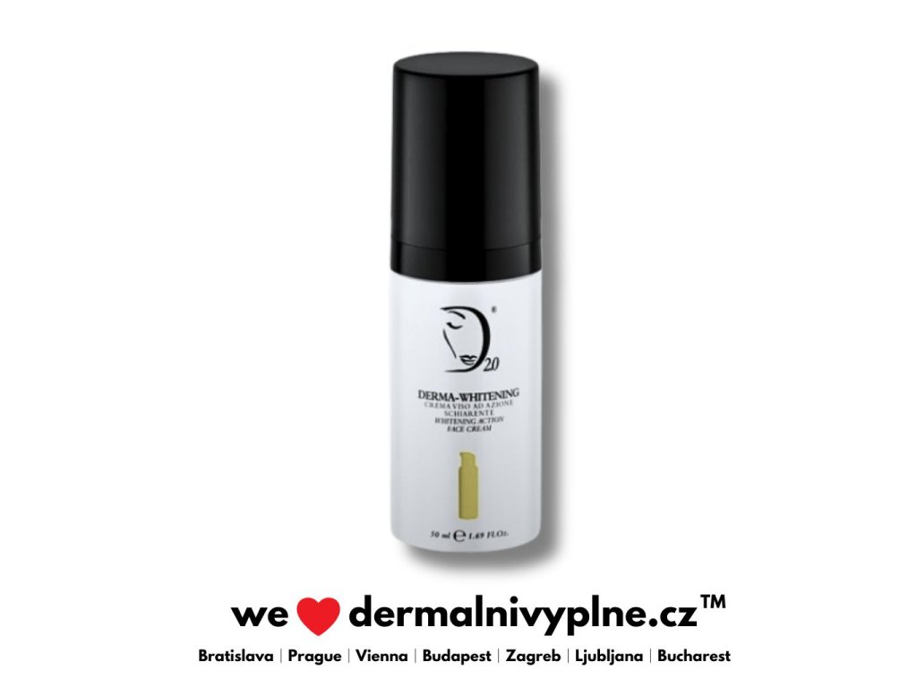DERMA WHITENING CREAM - Krém na obličej proti tmavým skvrnám a depigmentaci - denní depigmentační a bělicí ošetření doporučené k prevenci a léčbě hyperpigmentací, jako jsou sluneční skvrny, senilní lentigo, melasma, chloasma a poškození způsobené stárnutím vlivem fotostarnutí. Poskytuje intenzivní, celkové rozjasnění a působení proti tmavým skvrnám.