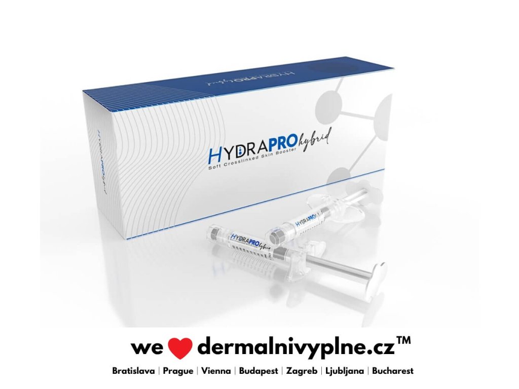HydraPRO Hybrid – Purifikovaný gel s kyselinou hyauluronovou pomáhá obnovit elasticitu pokožky a snížit viditelnost vrásek – je průhledný roztok v podobě purifikovaného gelu na bázi nízkomolekulární a vysokomolekulární mírně zesíťované kyseliny hyaluronové. HydraPRO Hybrid je dermokosmetický přípravek indikovaný při fyziologickém procesu stárnutí pokožky obličeje a těla, jehož účinky zvýrazňují zhrubnutí rohové vrstvy a změnu elastických vláken dermy (vrásky).