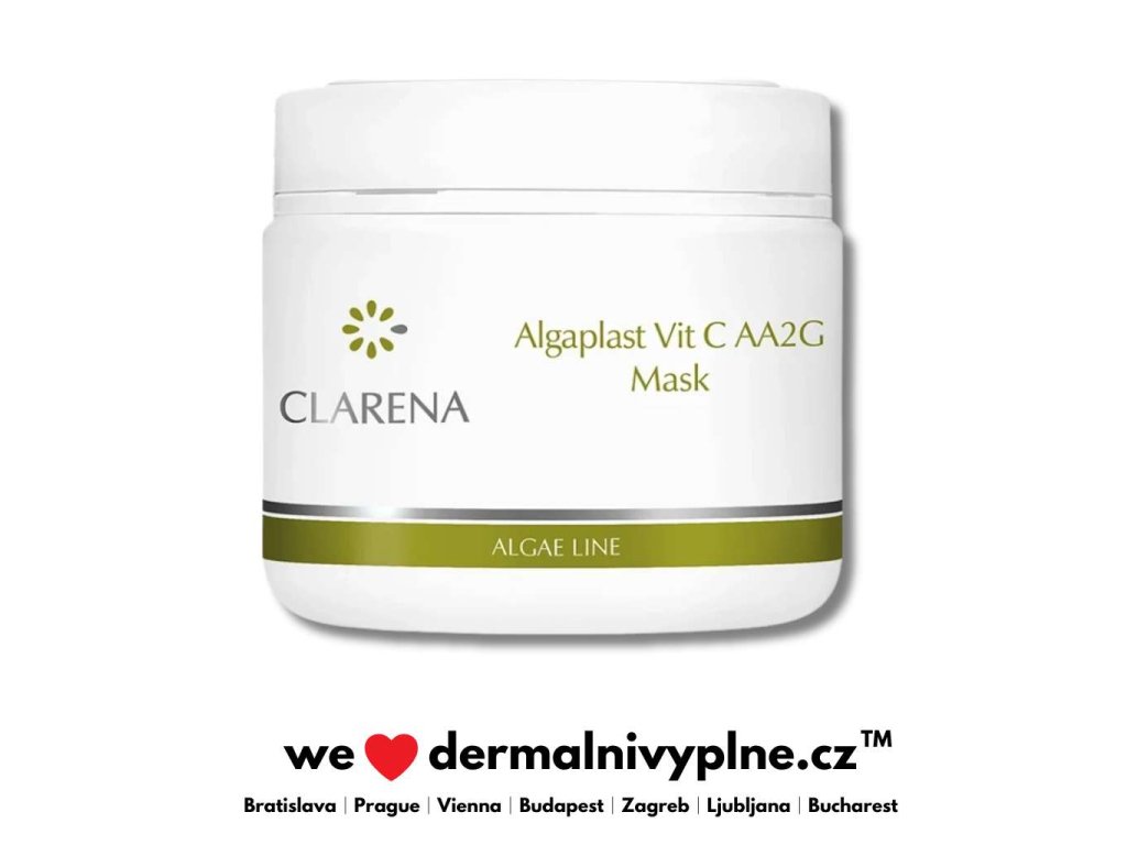 ALGAE LINE – Algaplast Vit C AA2G Mask 500 ml - Maska doporučovaná pro šedou, unavenou a pigmentovanou pleť. Obsahuje vitamín C AA2G™ – stabilizovanou formu vitamínu C navázanou na glukózovou molekulu. Při kontaktu s pokožkou se aktivuje, proniká do jejích hlubších vrstev, reguluje melanogenezi, zesvětluje pigmentové skvrny, vyživuje a okysličuje pleť, a zároveň zpomaluje procesy stárnutí.