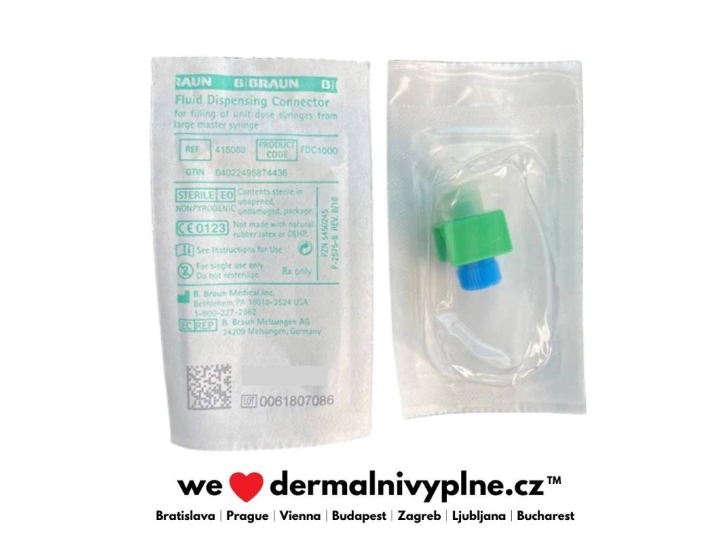 B│BRAUN FDC konektor pro dávkování tekutin – propojovací spojka, na jedno použití pro plnění jednodávkových stříkaček z větší hlavní stříkačky.
