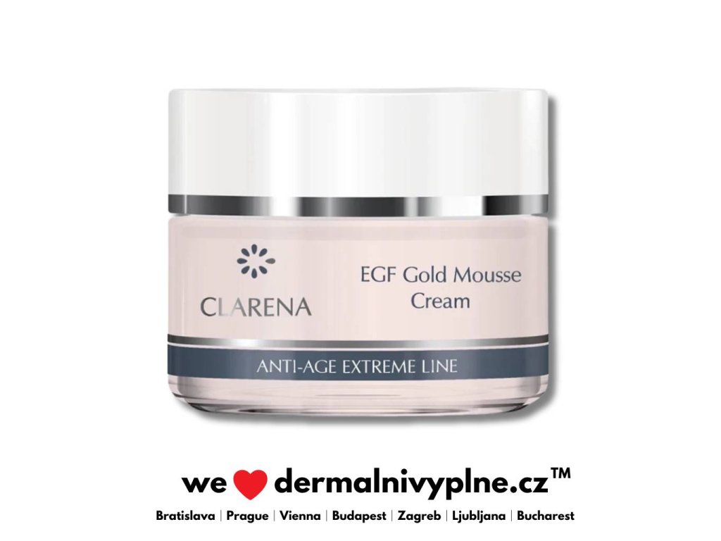 EGF Gold Mousse Cream – Peptidový penový krém s koloidním zlatem a komplexem růstových faktorů s omlazujícím a anti-aging účinkem. Díky obsahu ECM Tripeptidu stimuluje produkci kolagenu a elastinu, čím zlepšuje pevnost a hustotu pokožky. Růstové faktory EGF, IGF, FGF a VEGF podporují buněčnou obnovu i revitalizaci dermy. Částice zlata zajišťují výrazné rozjasnění pleti a unikátní lehká penová formula vytváří ideální podklad pod make-up. Produkt je zvlášť doporučen pro zralou pleť ztrácející pevnost.