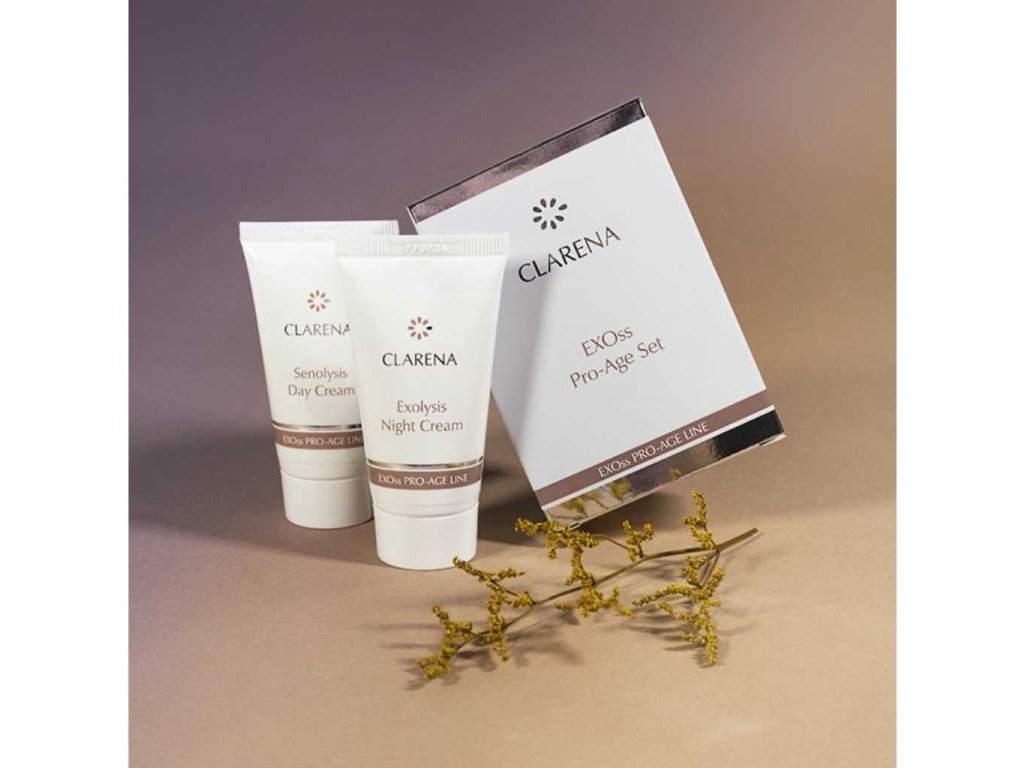 EXOSS PRO-AGE LINE – EXOss Pro-Age Set 2×30 ml - Profesionální regenerační set s denním a nočním krémem pro komplexní anti-aging péči. Intenzivní program domácí péče, určený pro zralou, dehydratovanou a unavenou pleť. Denní krém se senolytickým komplexem podporuje eliminaci stárnoucích buněk, čímž napomáhá obnovení mladistvého a svěžího vzhledu pleti. Noční krém s ExoPep komplexom, intenzivní regeneraci, vyhlazení a obnovu kožní bariéry během spánku.