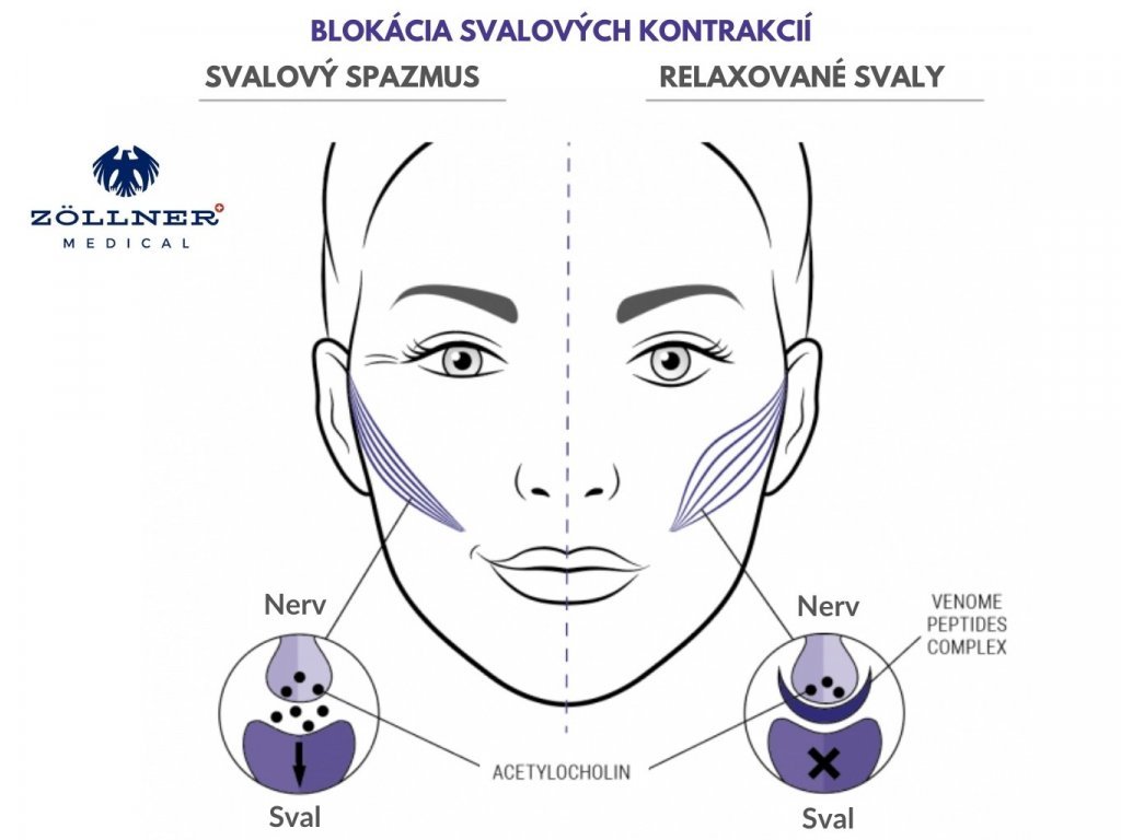 Mají přímý účinek na blokování přenosu elektrického impulsu do svalu prostřednictvím neurotransmitéra, brání kontrakcím a tím vyhlazují jemné vrásky vyplývající z nadměrné exprese a mimiky.